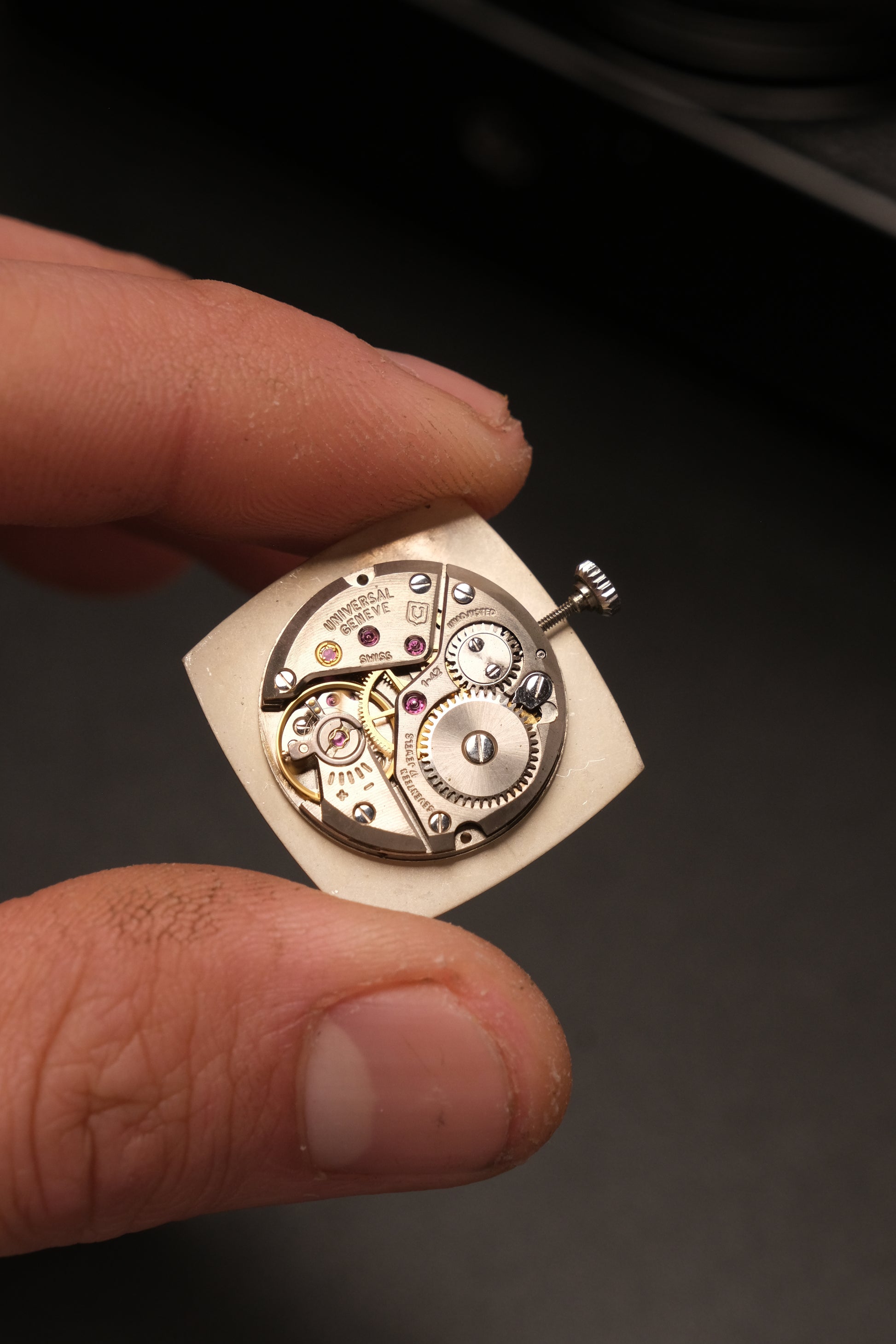 - Caliber: Universal Genève 1-42 Manual Winding Movement