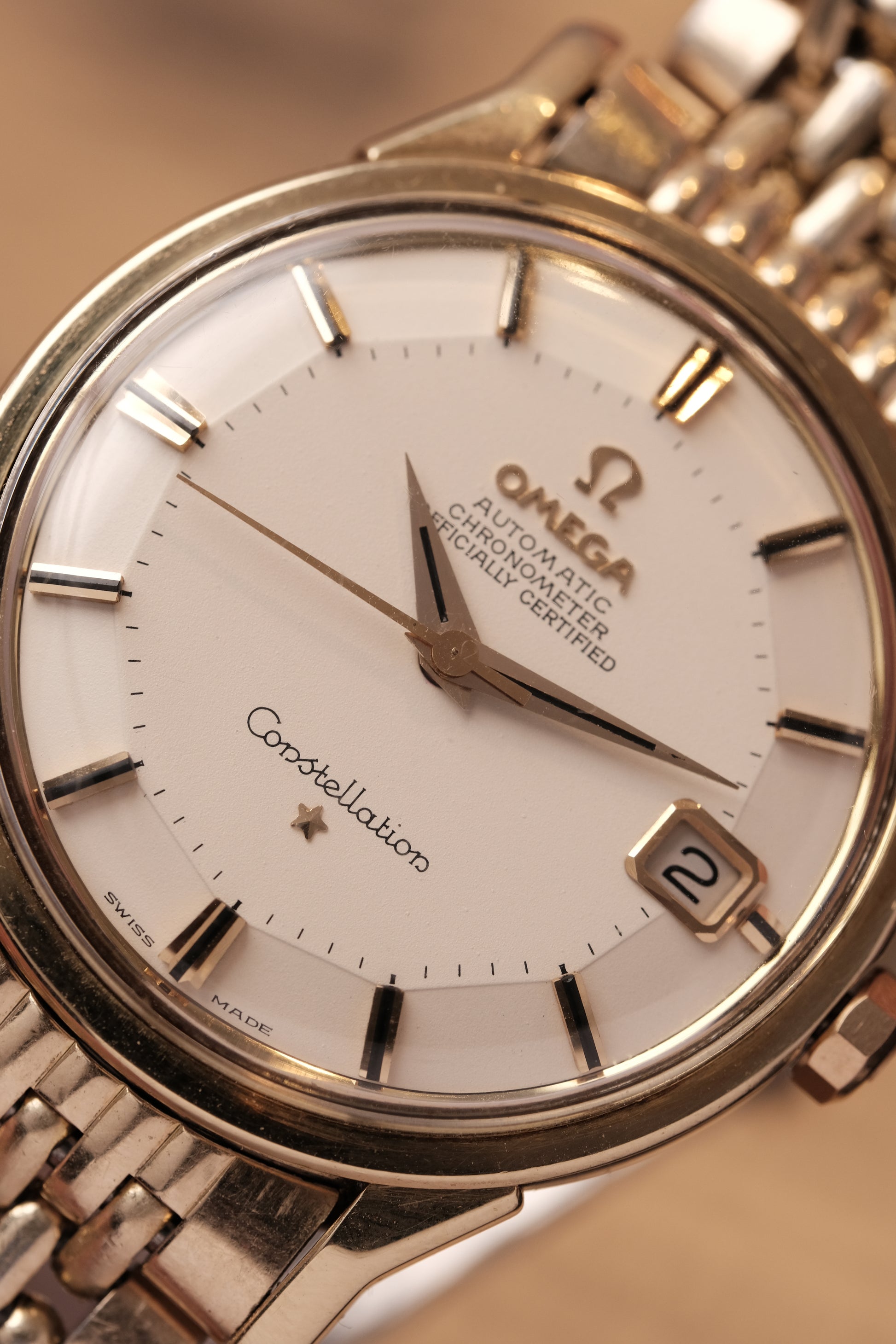 OMEGA CONSTELLATION PIE PAN DOG LEG GOLD AUTOMATIC CHRONOMETER REF. 168.005