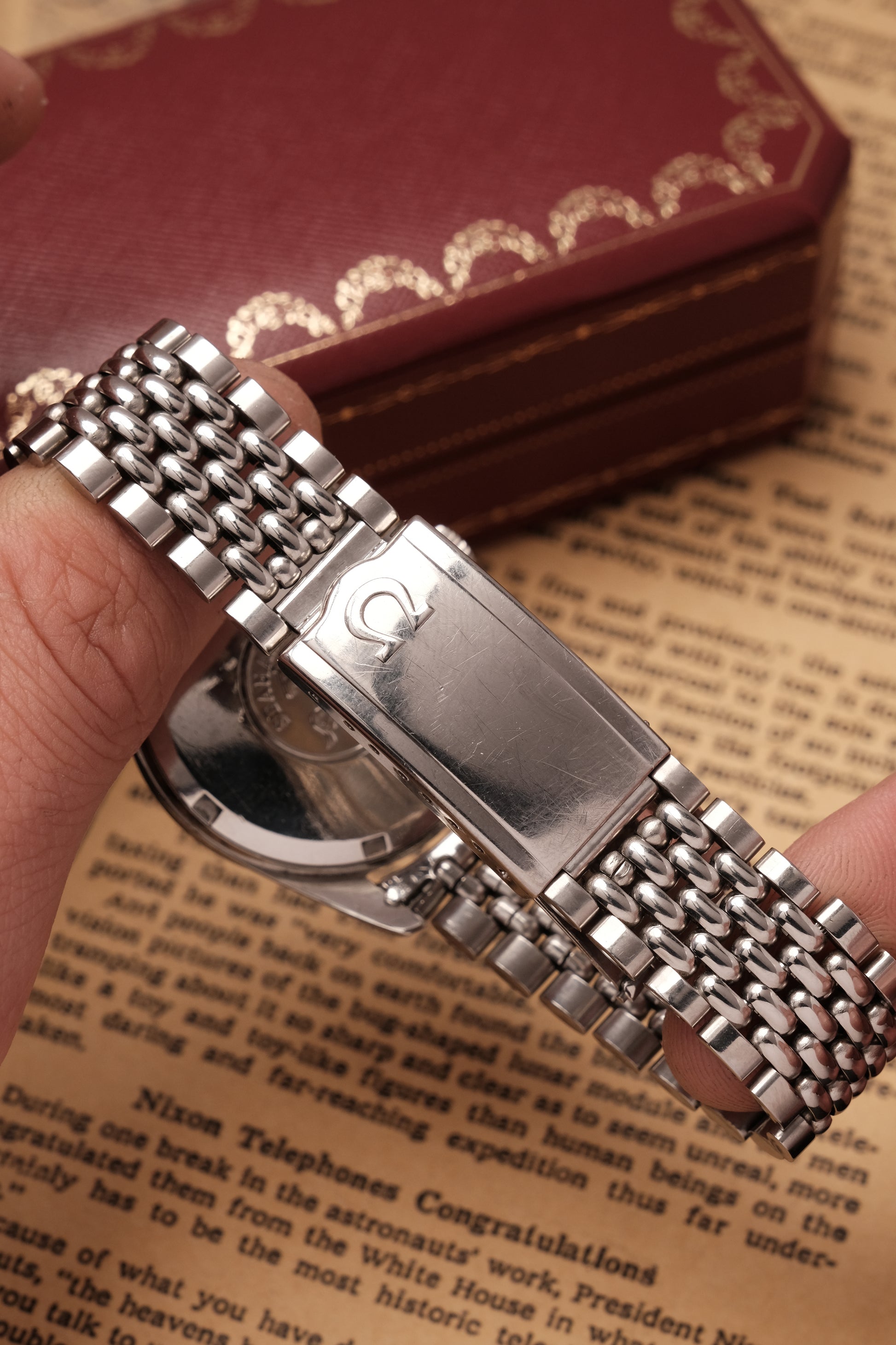 - Caliber: Omega 565 Automatic Movement ( 24 jewels Quickset day )