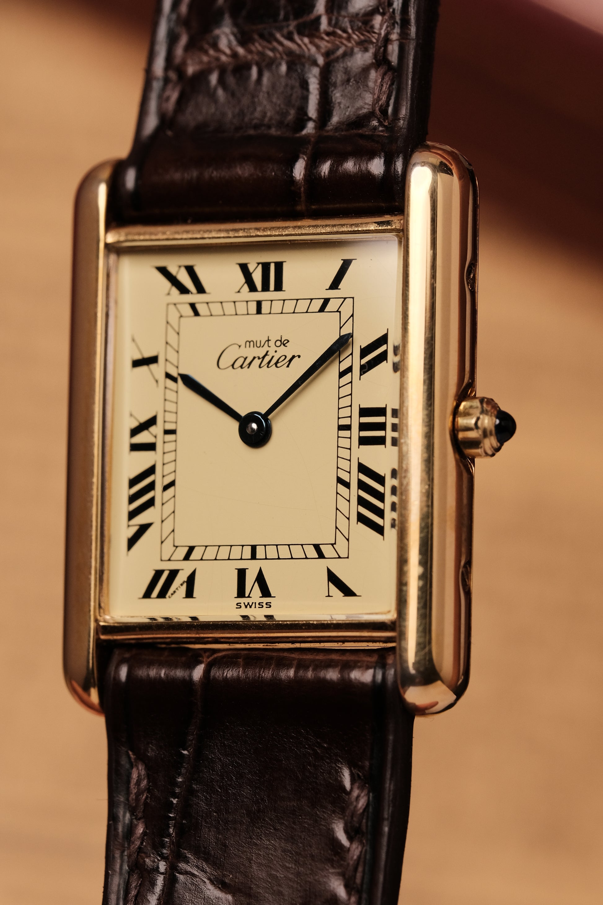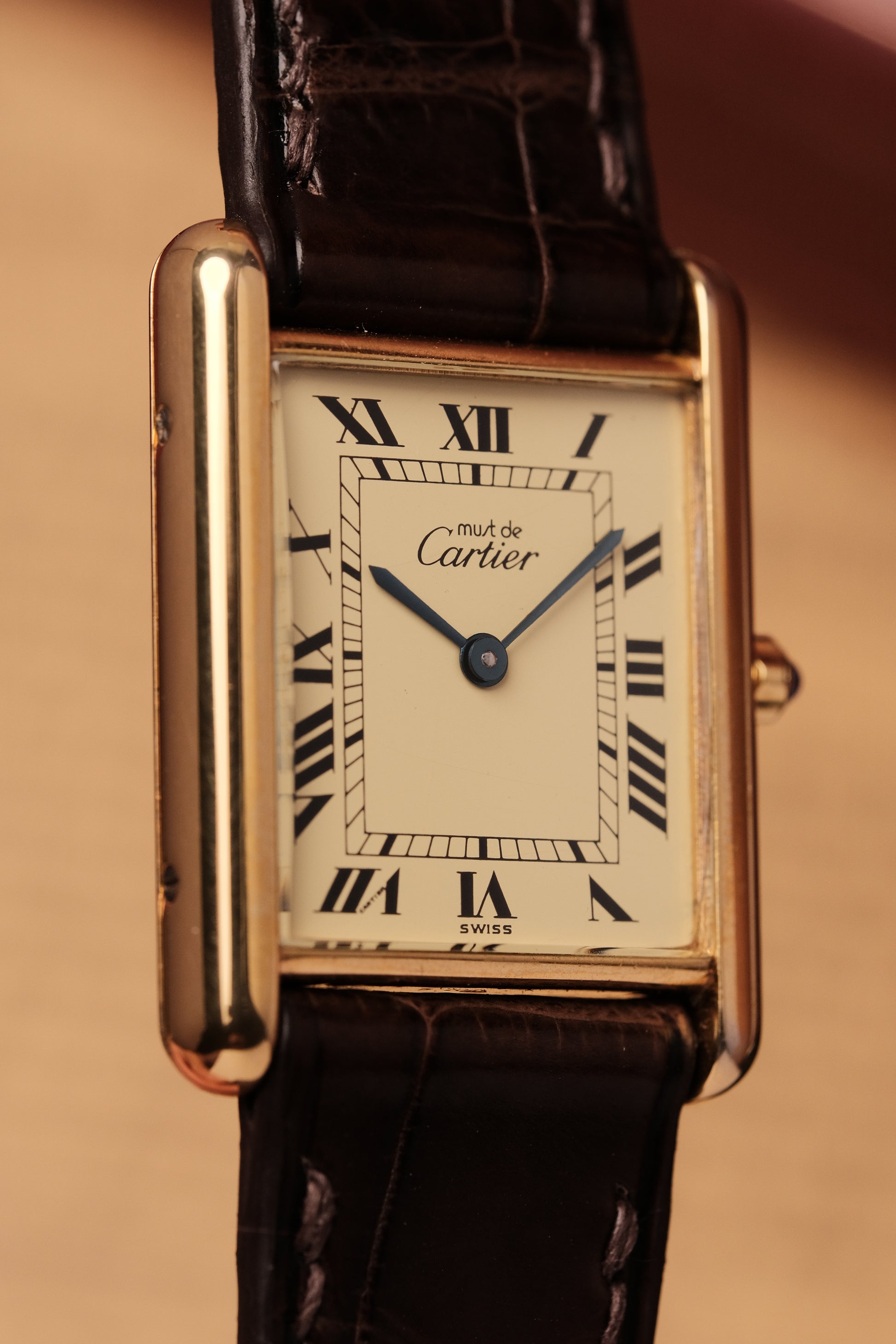 1990's CARTIER MUST DE CARTIER TANK VERMEIL ROMAN DIAL QUARTZ 23MM
