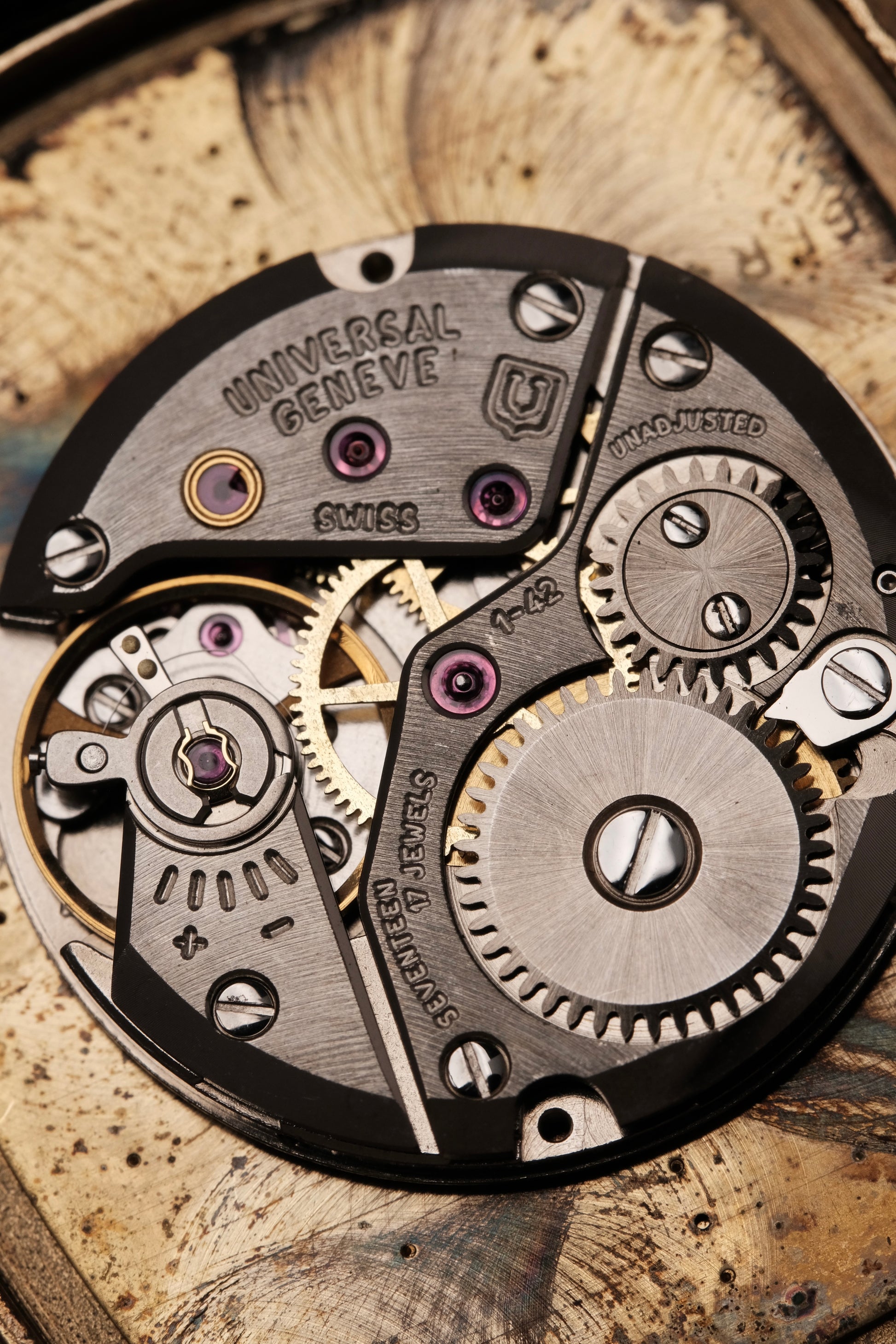 - Caliber: Universal Genève 1-42 Manual Wind Movement