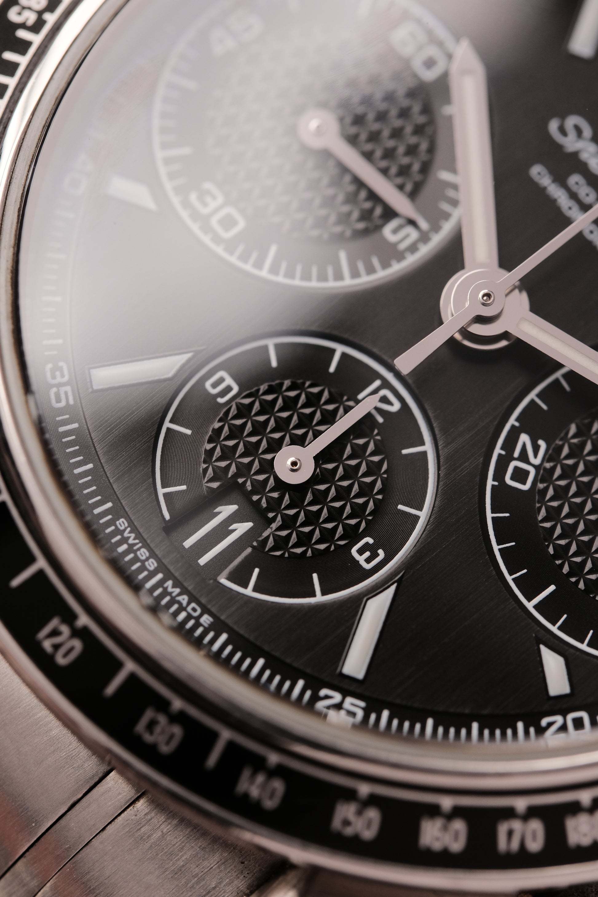 - Functions: chronograph, chronometer, date, small second, tachymeter