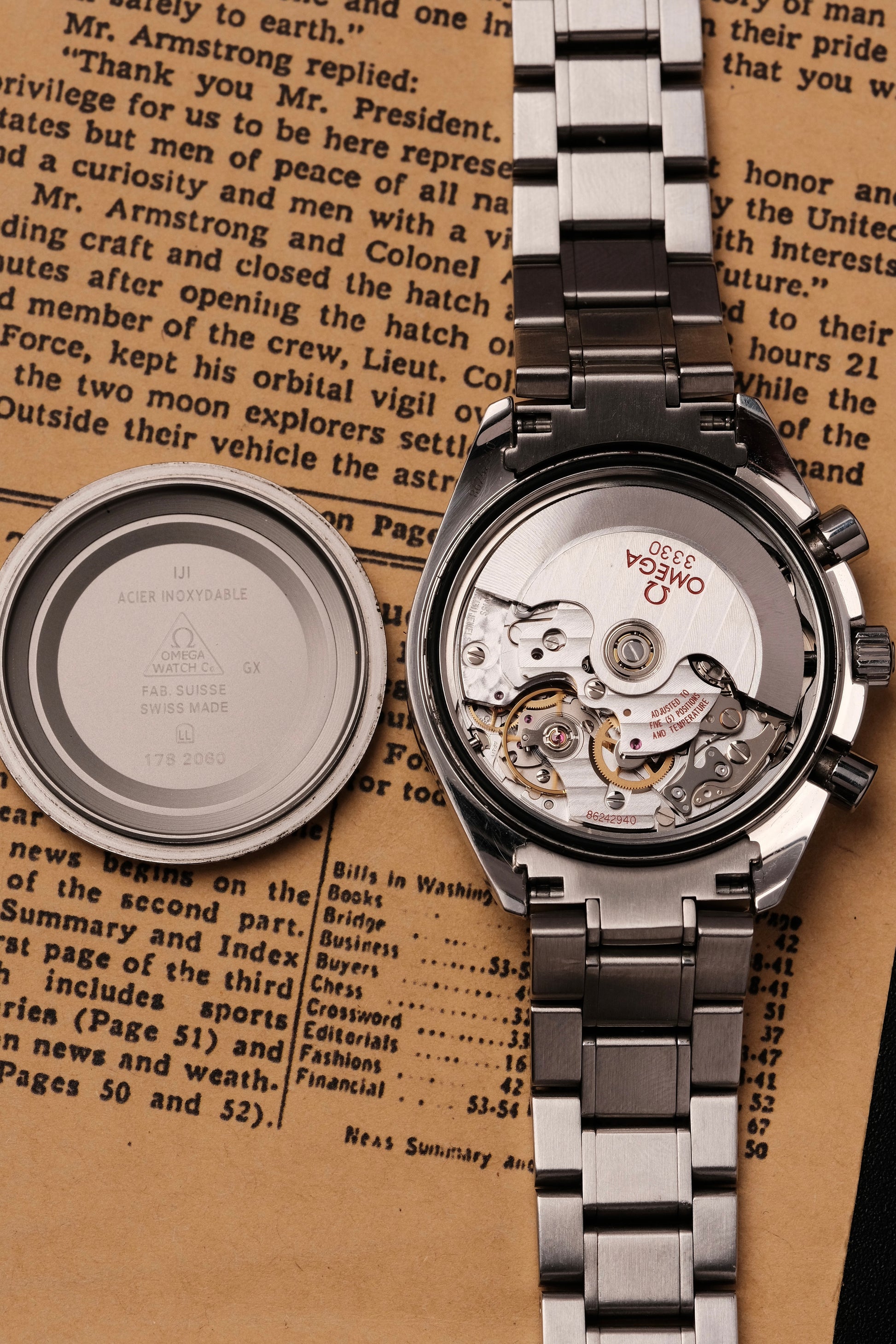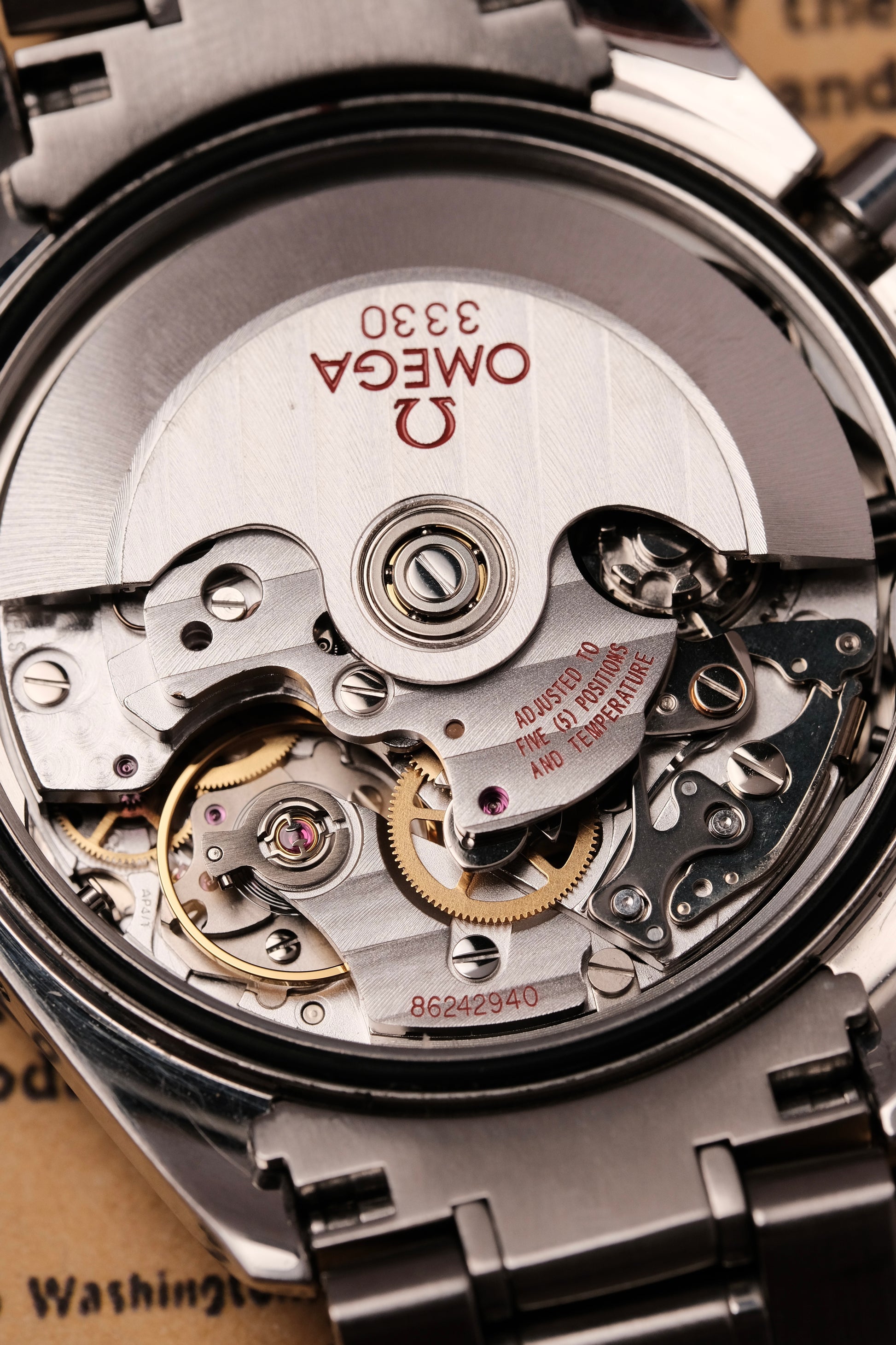 - Caliber: Omega 3330 (self-winding)