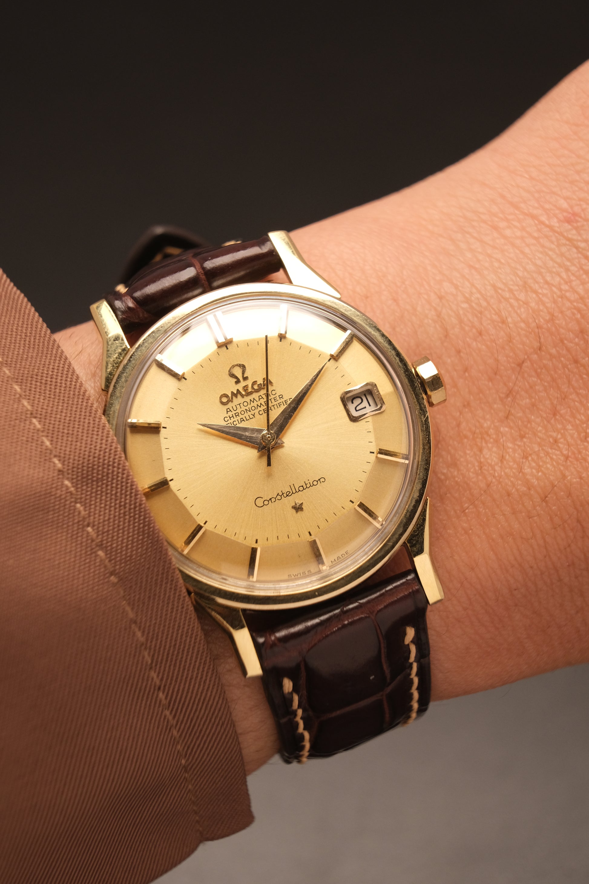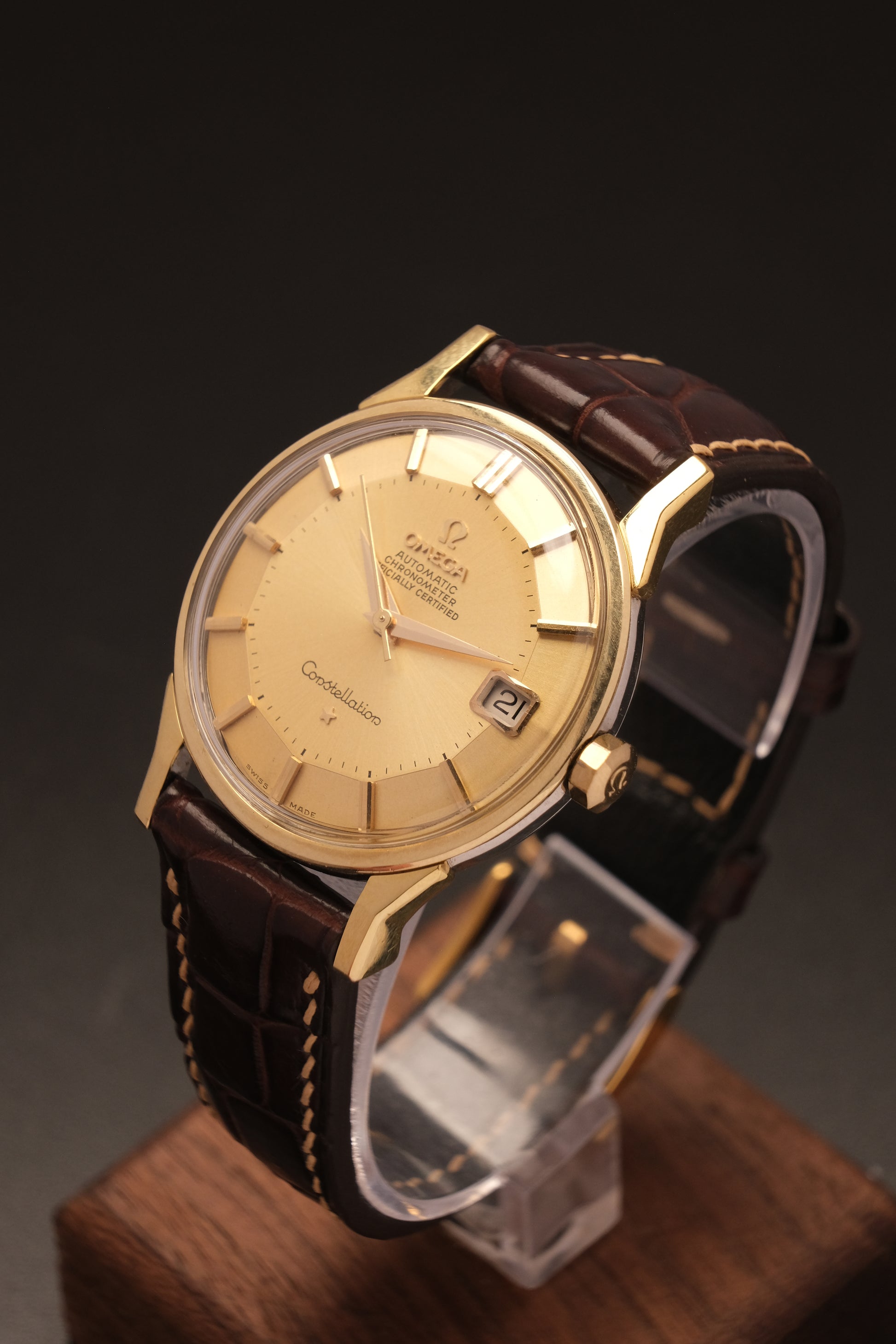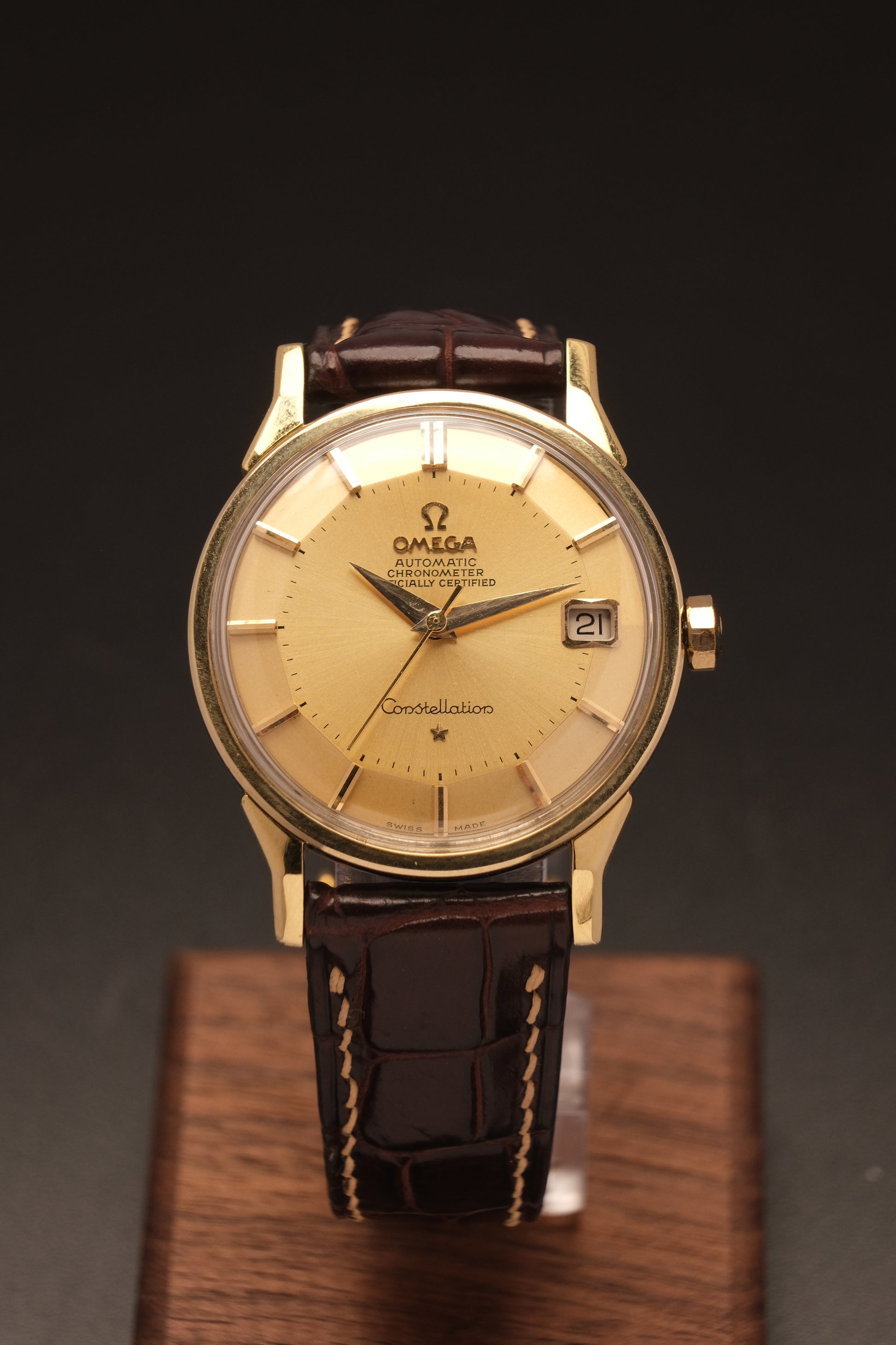 OMEGA CONSTELLATION PIE PAN DOG LEG GOLD AUTOMATIC CHRONOMETER REF. 168.005
