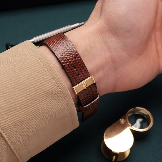 - Original Gold Plated Buckle with Universal Genève's logo