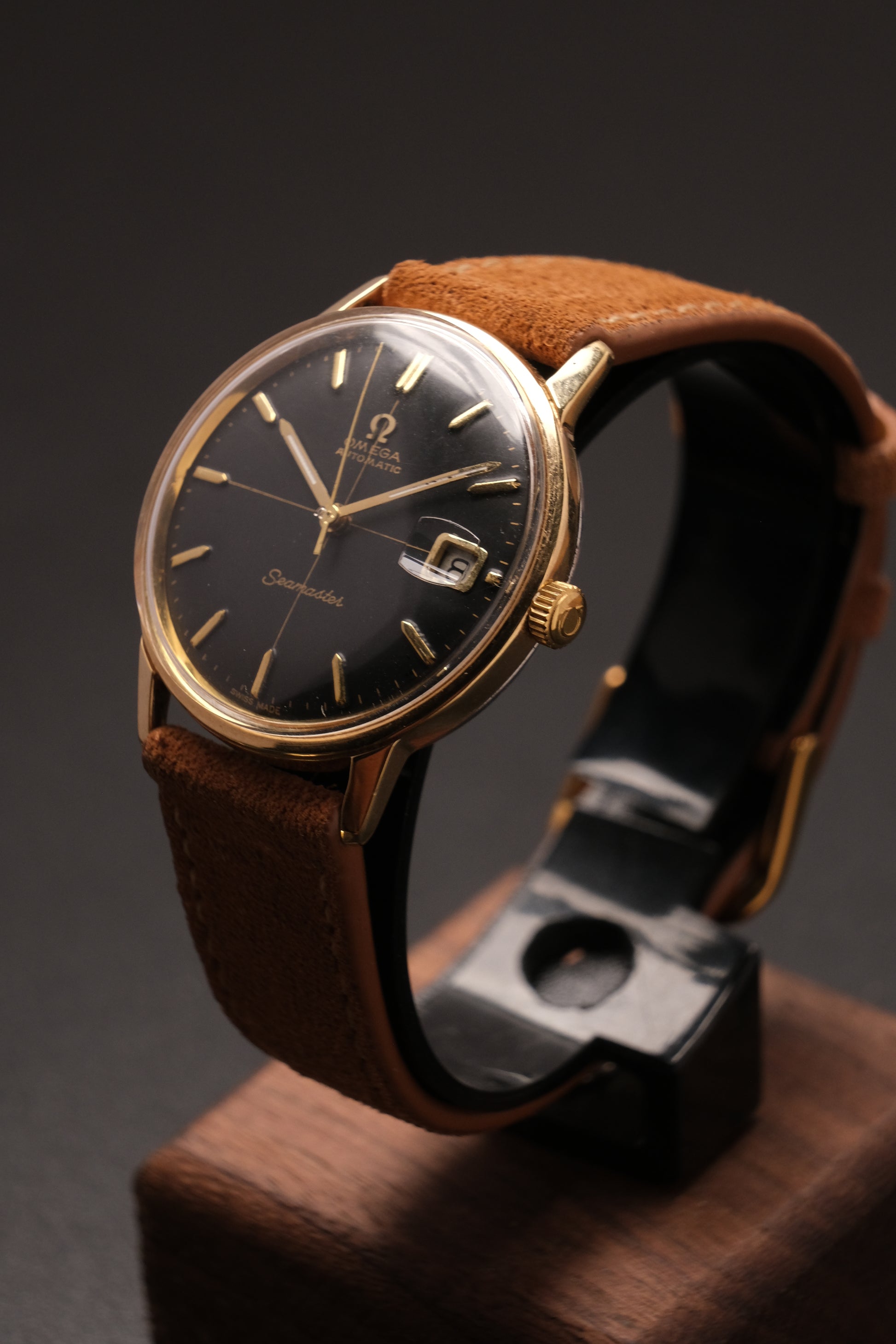 Vintage OMEGA Black Cross Dial Gold AUTOMATIC 166.002